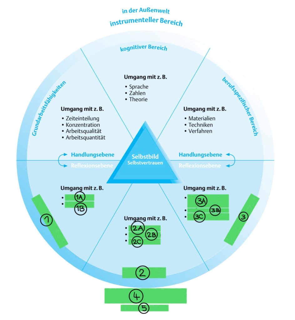 Beschrifte das Kreisbild der Arbeit für den Bereich, der die beschreibt.