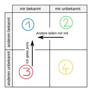 Ergänze die Felder im Johari-Fenster.